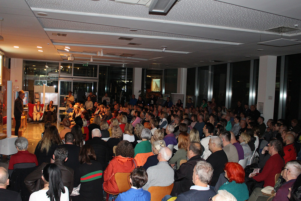 Na deževen četrtkov večer so se pripeljali slušatelji iz vse Slovenije, da bi poslušali izredno zanimivo predavanje dr. Semirja Osmanagića. V prostoru je bilo postavljeno okoli 130 stolov. Slušateljev je prišlo okoli 230, tako, da so številni stali.